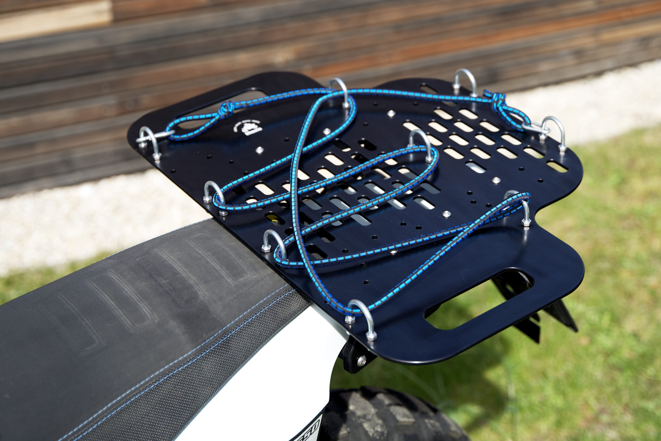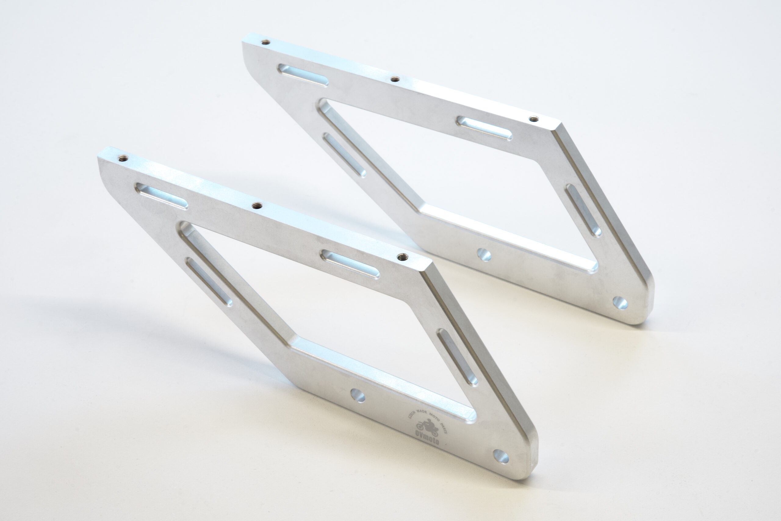 The sophisticated side mounts include holders for mounting side bags or other straps you need to attach. The material thickness of the brackets is 12mm. Weight of a pair of side brackets = 840g. Small plate with dimensions 300 x 230 and thickness 5mm with maximum lightness – weight 620g
