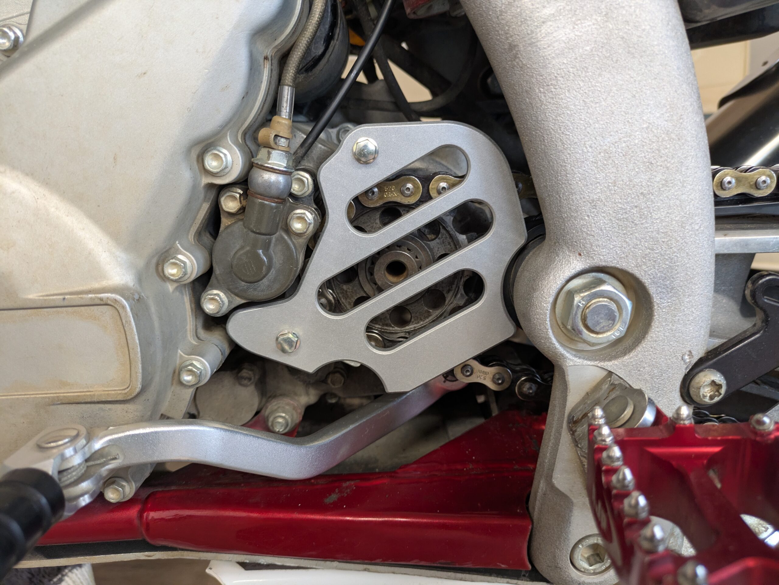 Standard front sprocket cover designed for the AJP PR7 motorcycle, developed with a focus on functionality, simplicity, and reliable operation.